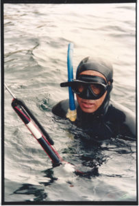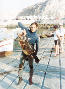 Pela mão do meu pai apaixonei-me pelo mar em idade muito tenra; com ele vi as ondas da Costa da Caparica pela primeira vez e com apenas seis anos descobri o deleite de as «surfar» num pequeno colchão pneumático. Ao arrepio dos outros miúdos que gostavam de chapinhar nas poças de água, eu queria o mar aberto e de preferência com ondas! Mas seria com o meu tio Zé Alberto Andrade e Silva, dois anos mais tarde, que teria o primeiro contacto com o mundo da caça submarina, já lá vão…cinquenta anos! Chiça, como o tempo voa – a vida não passa de uma apneia do tempo!